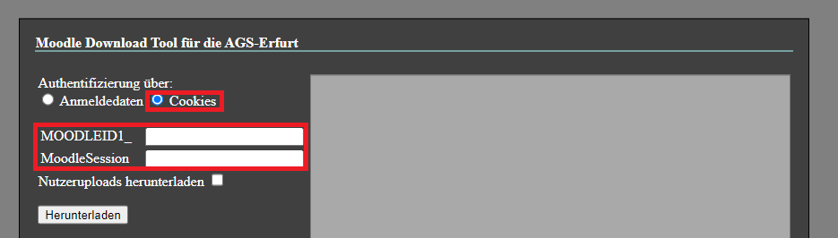 MOODLEID1_ und MoodleSession komplett in die eingabefelder mit den gleichen namen.